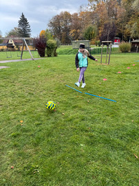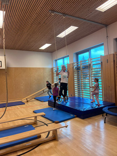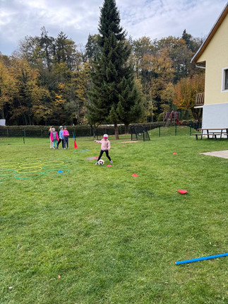 Bei angenehmen Temperaturen konnten sich die Kinder beim Fußball-Techniktraining im Schulhof, bei verschiedenen Pausenspielen am Asphalt sowie beim Geräteturnen im Turnsaal austoben.